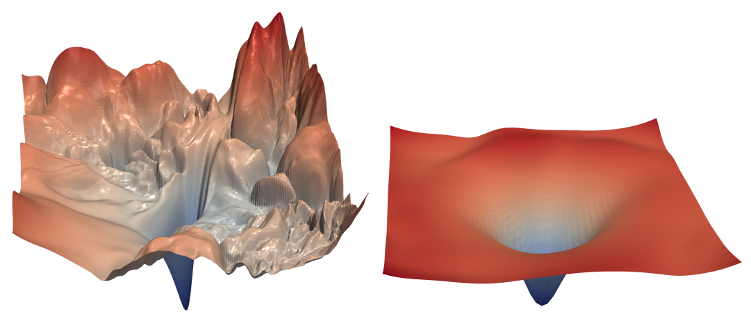 It can be useful to visualize a loss function as a surface in space. For example, perhaps your loss function has two parameters. As you change those parameters, the loss function increases, or decreases, meaning the surface rises or falls. If minimizing the loss function, the goal is to find the spot on the surface with the smallest value. The properties of the optimization problem determine if this minimum point is easy or hard to find.