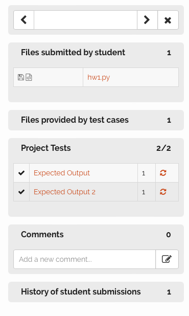 Once uploaded, check your "score" to make sure you pass any default auto-tests. Click Review on the top to see this. You should see 1/1 or 3/3 next to your submission. If you didn't pass all the tests, it will show something like 0/1 or 2/3. Click on your assignment's upload link to see which tests you failed. You can then click the words "Project Tests" to see the individual tests: