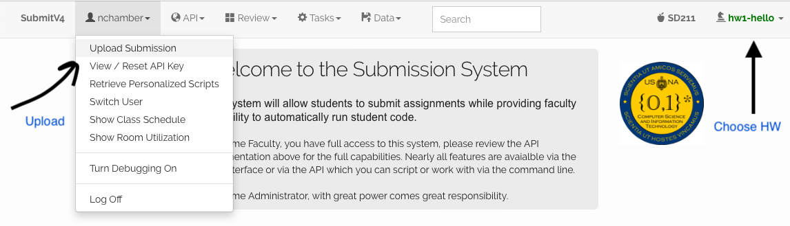 Visit our submit.cs.usna.edu webpage and login with your normal USNA credentials.
