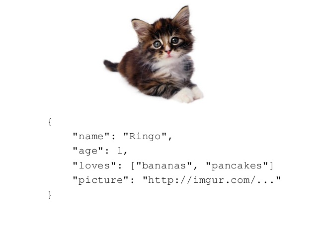It's just a dictionary! See? You'd read this format from a file, or a website might return this as one big string. All we need to do is use Python's handy-dandy json library to parse the JSON string into Python data types. The above simple example would just be converted to a dictionary like you're now used to. Here is an example that's a bit more complicated: