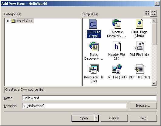 folder and the C++ File (.cpp) option. Assign a name to your new source file. It is typical to give your source file the