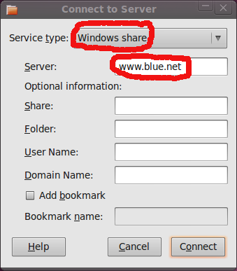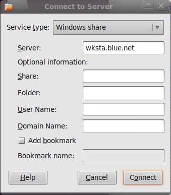 you want to connect to, e.g. wksta.blue.net. Click