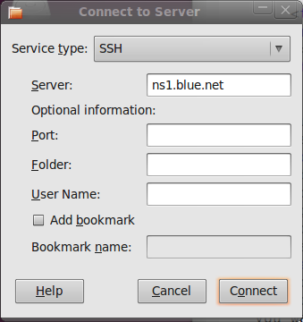 you want to connect to, e.g. ns1.blue.net. Click